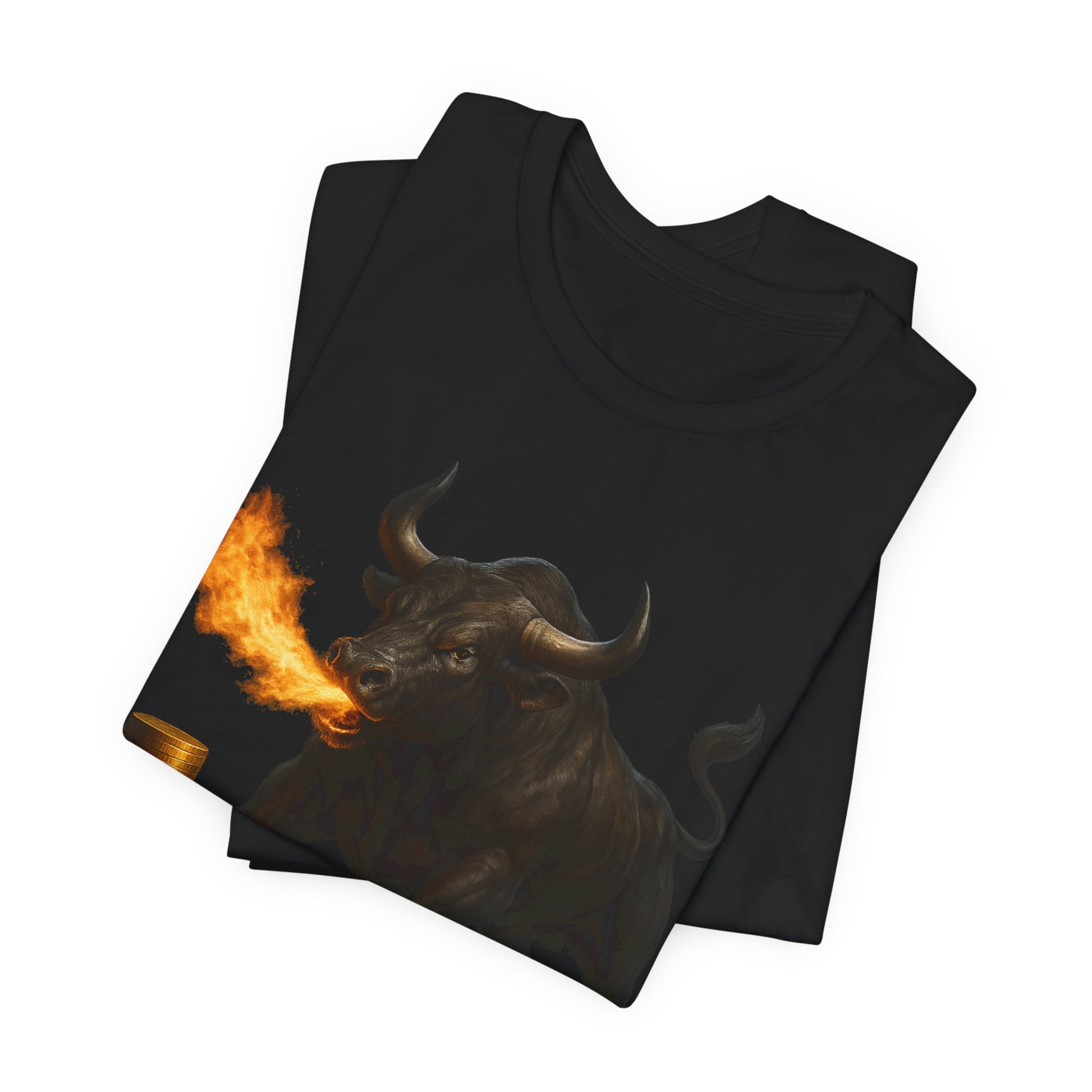 Unleash your power with the Fire Breathing Bull Shirt by TheBullThread. Featuring a bold, realistic bull breathing fire on the front, and the statement “I AM AN UNSTOPPABLE FORCE” with fiery lettering on the back, this shirt embodies strength, wealth, and determination. Perfect for entrepreneurs, crypto investors, and anyone living with a powerful mindset.