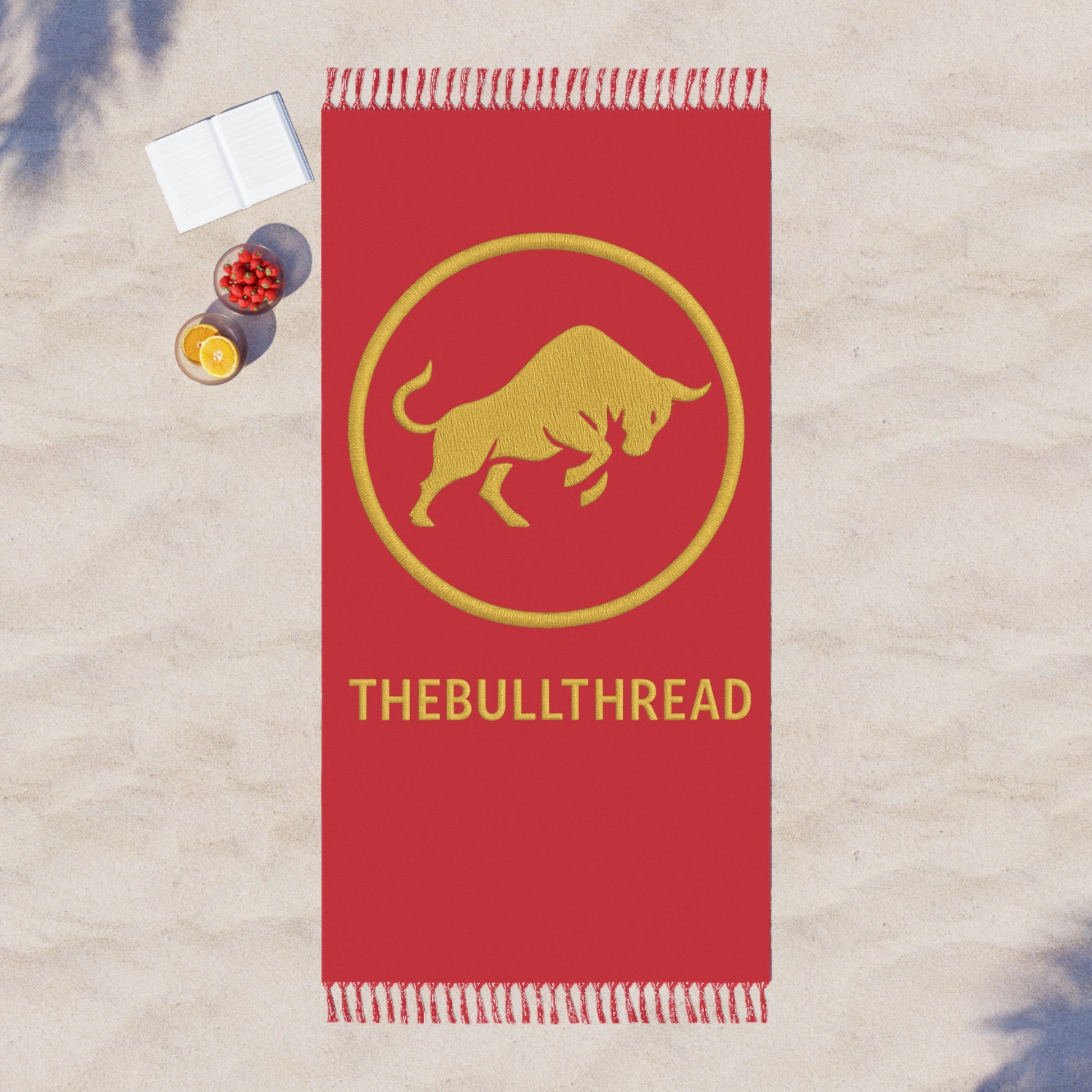 Wrap yourself in luxury with TheBullThread Dark Red Boho Beach Blanket, featuring bold golden ring of our iconic golden bull emblem. Designed for those who live and breathe strength, style, and freedom, this premium blanket is perfect for the beach, poolside, festivals, or cozy nights at home. Made with a soft yet durable weave, it blends bohemian flair with high-end fashion energy, making it a statement piece in any setting. Free shipping included for a truly premium experience.